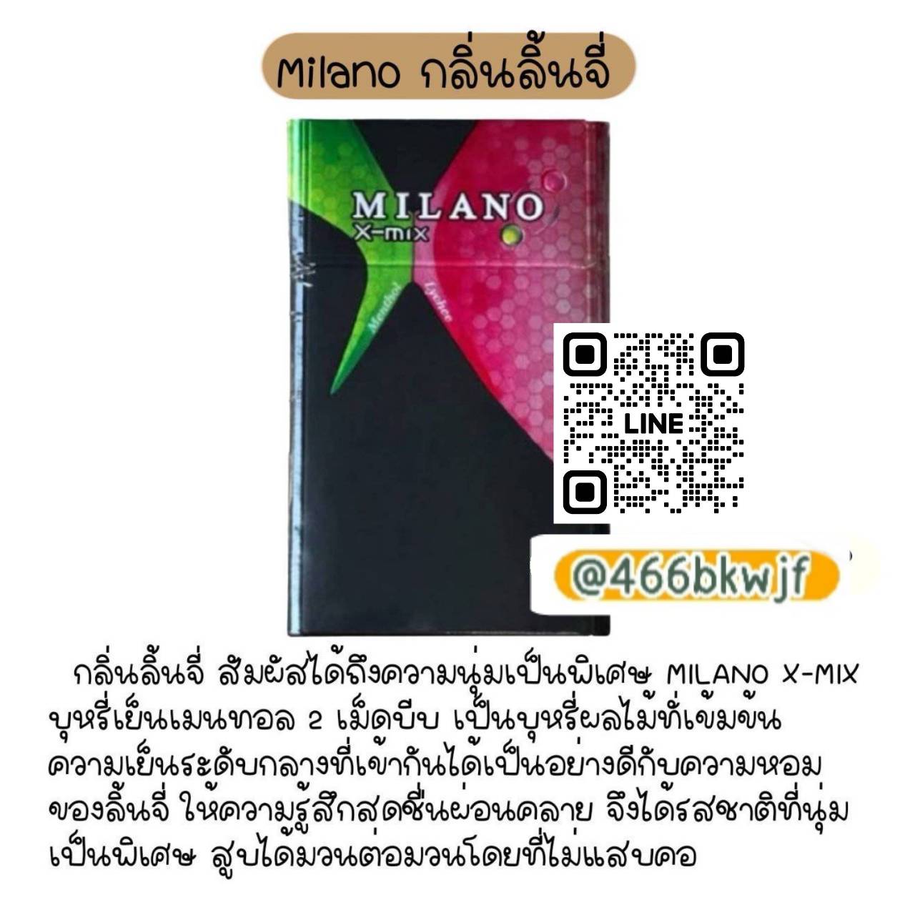 บุหรี่นอก Milano X-Mix ลิ้นจี่ (2 เม็ดบีบ) : บุหรี่เมนทอลกลิ่นใหม่จากแบรนด์มิลาโน่ ที่มีเม็ดบีบเพิ่มความเย็นและเม็ดบีบหอมเข้มข้นของลิ้นจี่ สัมผัสได้ถึงความนุ่มเป็นพิเศษ Milano X-Mix บุหรี่เย็นเมนทอล 2 เม็ดบีบ เป็นบุหรี่ผลไม้ที่หอมกลิ่นลิ้นจี่เข้มข้น ความเย็นระดับกลางที่เข้ากันได้ดีกับความหอมของลิ้นจี่ ให้ความรู้สึกสดชื่นผ่อนคลาย ด้วยใบยาคัดเกรดพรีเมี่ยม รสชาตินุ่มเป็นพิเศษ สูบได้มวนต่อมวนโดยไม่แสบคอ