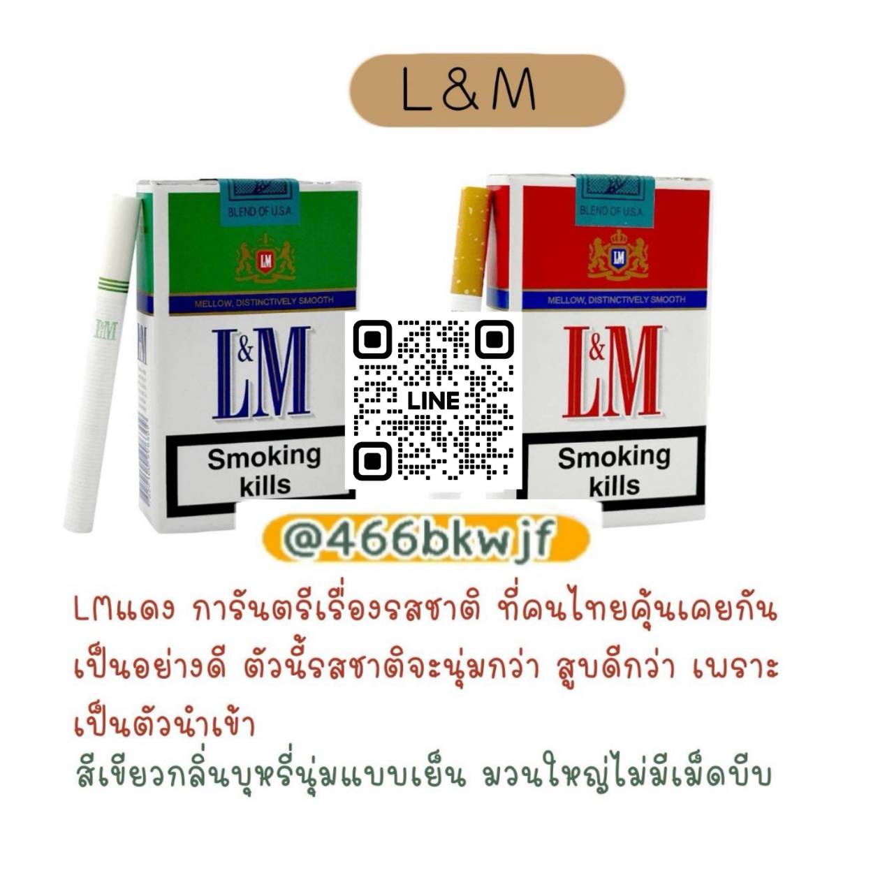 L&M MENTHOL ชื่อนี้การันตรีเรื่องรสชาติ ที่คนไทยคุ้นเคยกันเป็นอย่างดี ตัวนี้รสชาติจะนุ่มกว่า สูบดี